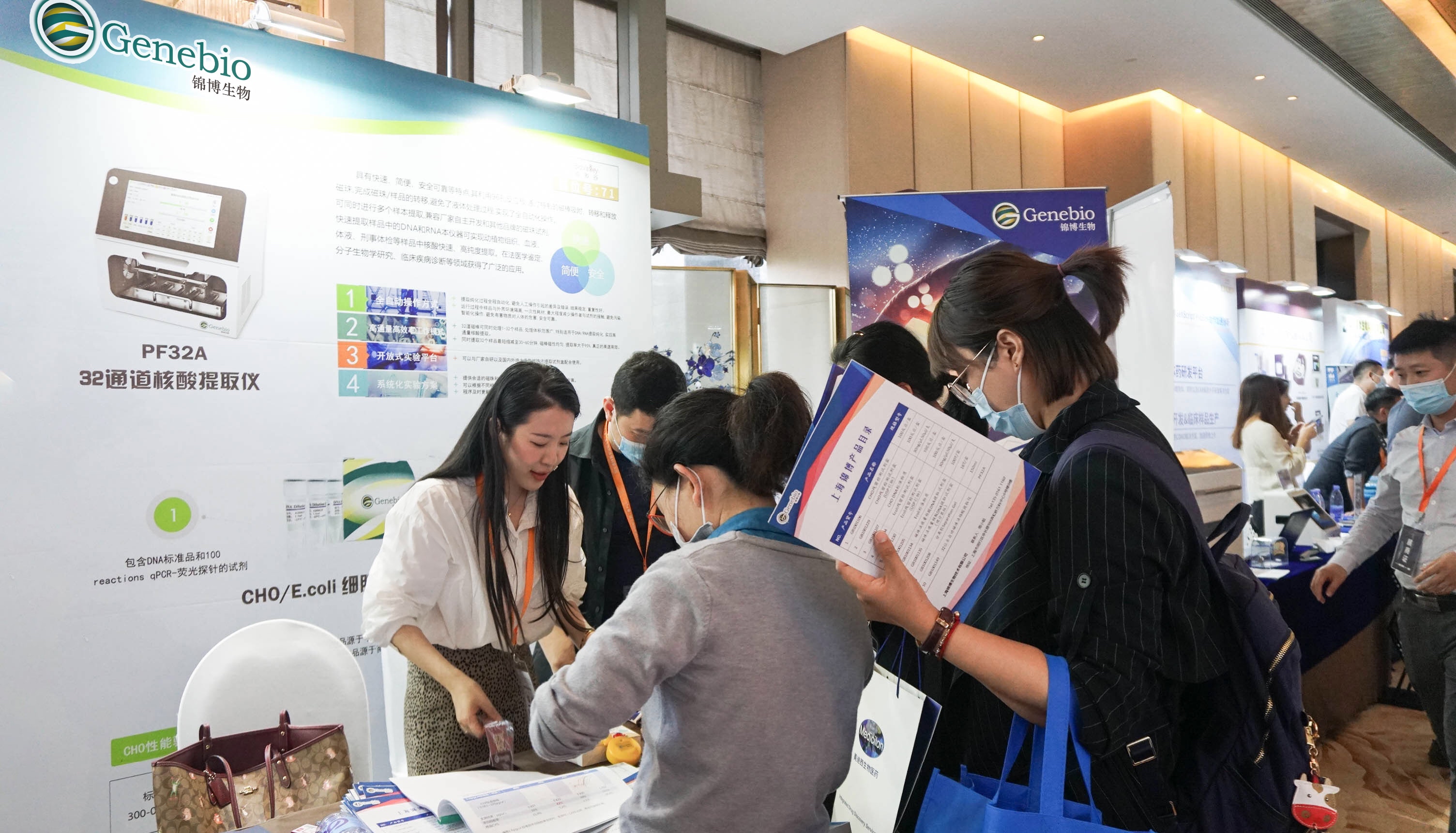 大会期间,上海锦博携新开发的CHO、E.coli残留DNA检测试剂盒,配套的前处理提取试剂盒及自动化提取工作站参加展出,致力于一体化解决企业对于生物制药产品残留DNA检测的需求。上海锦博凭借专注的态度和专业的品质受到众多企业的青睐,现场吸引了众多嘉宾及参会人员前来我司展台咨询交流,并对我司提供的产品和技术服务给出了高度的认可与评价。